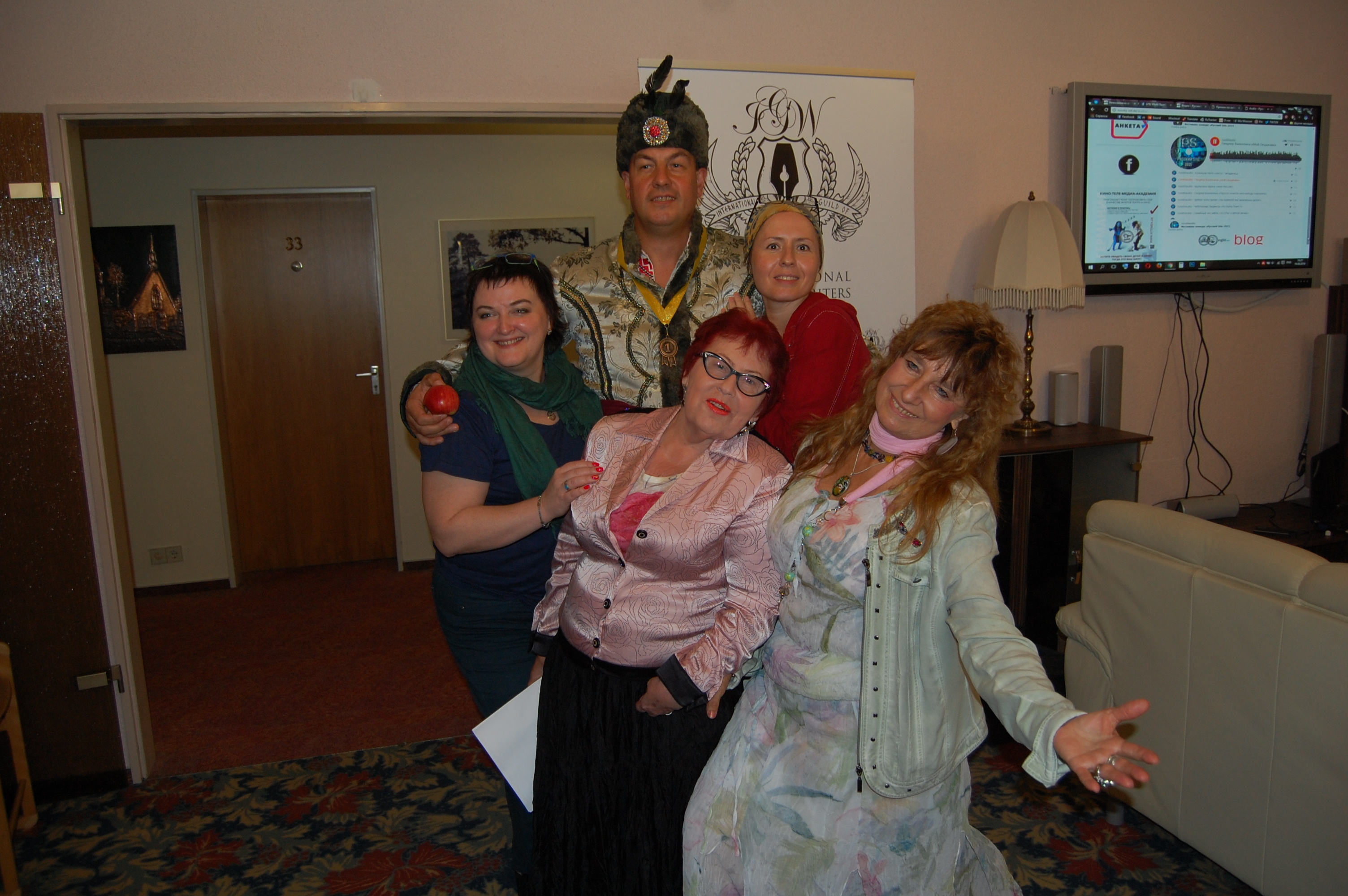 После официальной части мы перенеслись в необыкновенный мир карнавала, устроив самый настоящий маскарад в средневековом стиле. Вот тут наши гости проявили не дюжую смекалку и фантазию, представив своих героев в самых разных жанрах: от пантомимы до драмы, песен и танцев, декламации и интерактива. Правду говорят, если люди талантливы, то талантливы во многом, что с успехом в этот вечер доказали наши писатели. Искусству их перевоплощения можно было только позавидовать. Не остались в стороне даже скептики, очень скромные сами по себе персоны и те, кто ни слова не понимал по-русски. Заговорили!!! А это значит, что не только мы учим немецкий язык, но и русский, благодаря нам, вливается в здешнюю жизнь.